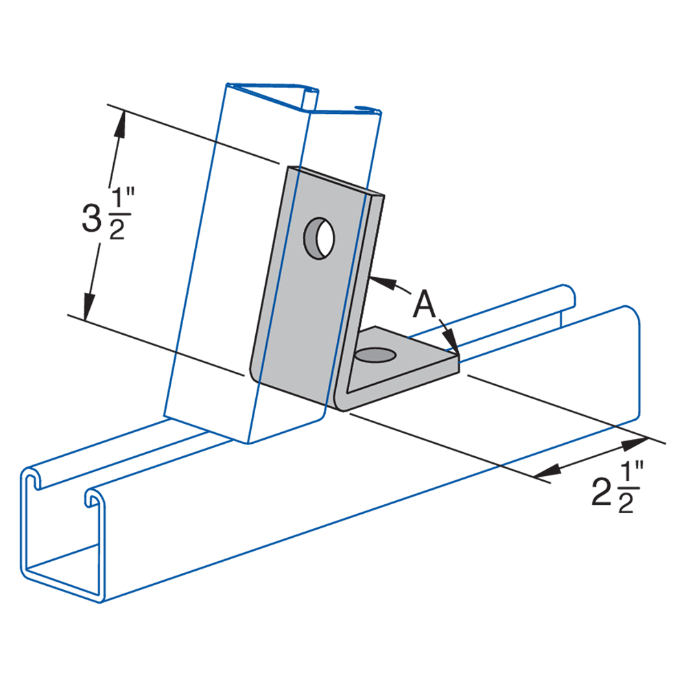 H-STRUT General Fittings are designed to fit with all H-STRUT 1-5/8" wide channels. All H-STRUT fittings are manufactured from 1/4" thick carbon steel, 1-5/8" wide, all holes are 9/16" diameter, spaced 1-7/8" on center and 13/16" from the end.