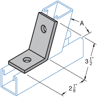 H-STRUT General Fittings are designed to fit with all H-STRUT 1-5/8" wide channels. All H-STRUT fittings are manufactured from 1/4" thick carbon steel, 1-5/8" wide, all holes are 9/16" diameter, spaced 1-7/8" on center and 13/16" from the end.