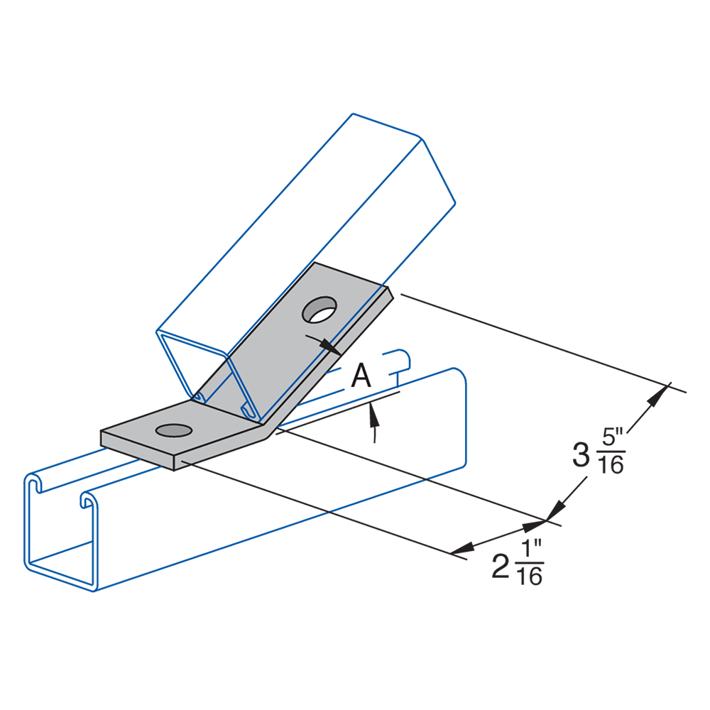 H-STRUT General Fittings are designed to fit with all H-STRUT 1-5/8" wide channels. All H-STRUT fittings are manufactured from 1/4" thick carbon steel, 1-5/8" wide, all holes are 9/16" diameter, spaced 1-7/8" on center and 13/16" from the end.