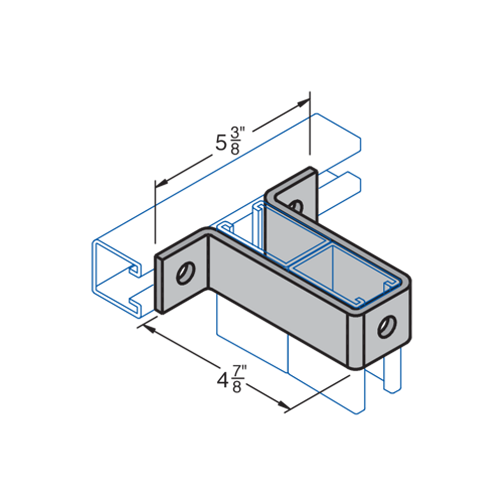 H-STRUT General Fittings are designed to fit with all H-STRUT 1-5/8" wide channels. All H-STRUT fittings are manufactured from 1/4" thick carbon steel, 1-5/8" wide, all holes are 9/16" diameter, spaced 1-7/8" on center and 13/16" from the end.