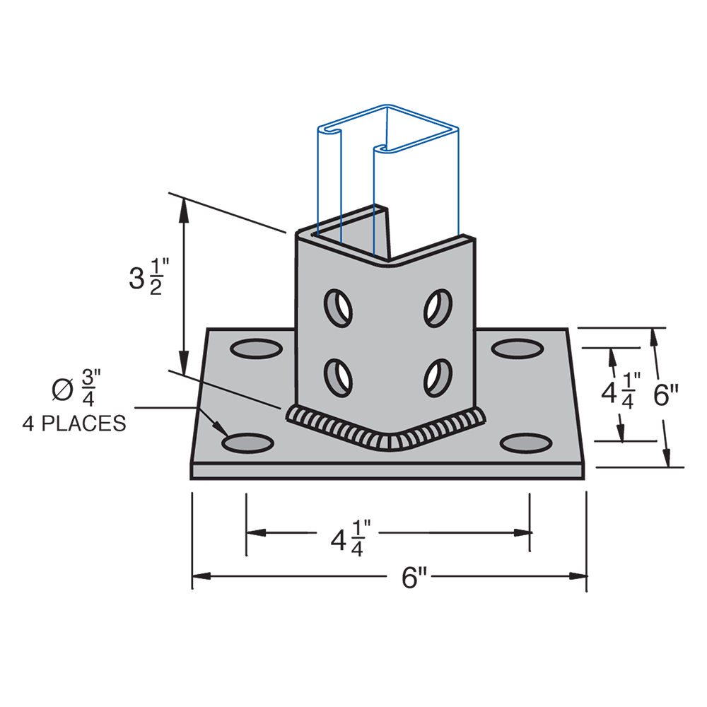 H-STRUT General Fittings are designed to fit with all H-STRUT 1-5/8" wide channels. All H-STRUT fittings are manufactured from 1/4" thick carbon steel, 1-5/8" wide, all holes are 9/16" diameter, spaced 1-7/8" on center and 13/16" from the end.