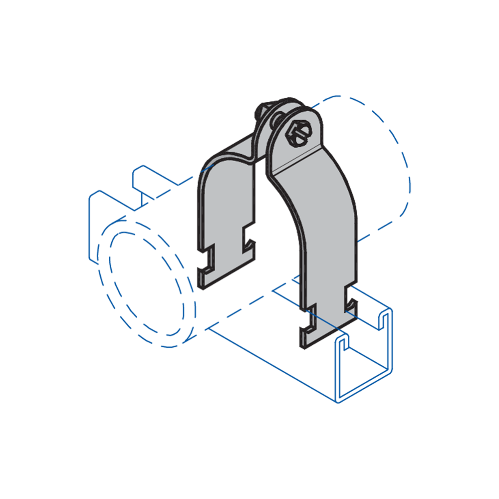 H-STRUT Pipe Clamps are all manufactured to fit into the standard openings of 1-5/8" channel to support runs of piping where desired, to secure pipes in place.