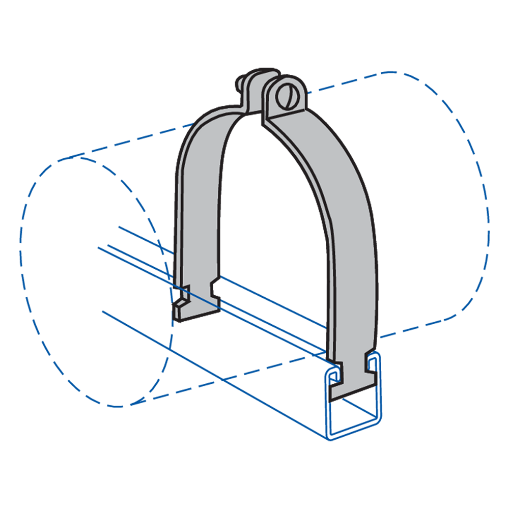 H-STRUT Universal Clamps are all manufactured to fit into the standard openings of 1-5/8" channel to support runs of piping where desired, to secure the pipe in place.