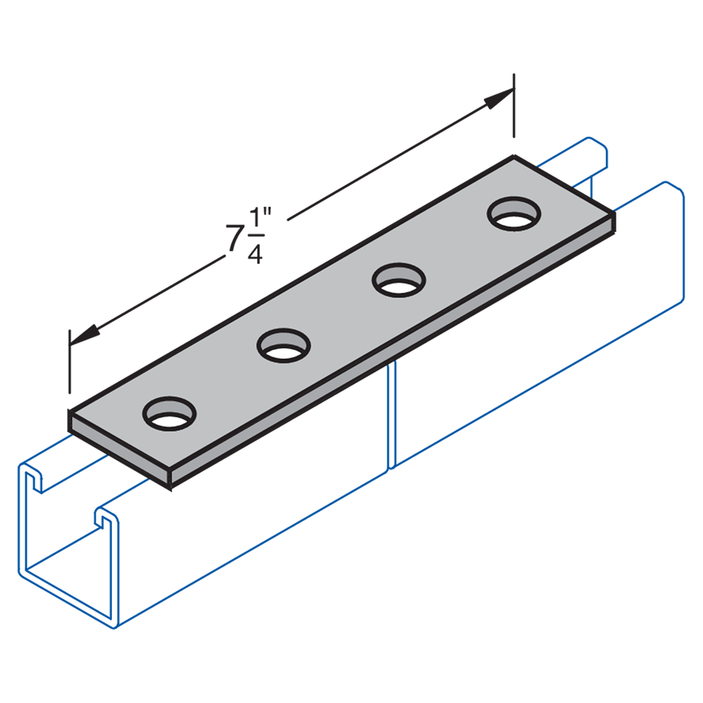 H-STRUT General Fittings are designed to fit with all H-STRUT 1-5/8" wide channels. All H-STRUT fittings are manufactured from 1/4" thick carbon steel, 1-5/8" wide, all holes are 9/16" diameter, spaced 1-7/8" on center and 13/16" from the end.