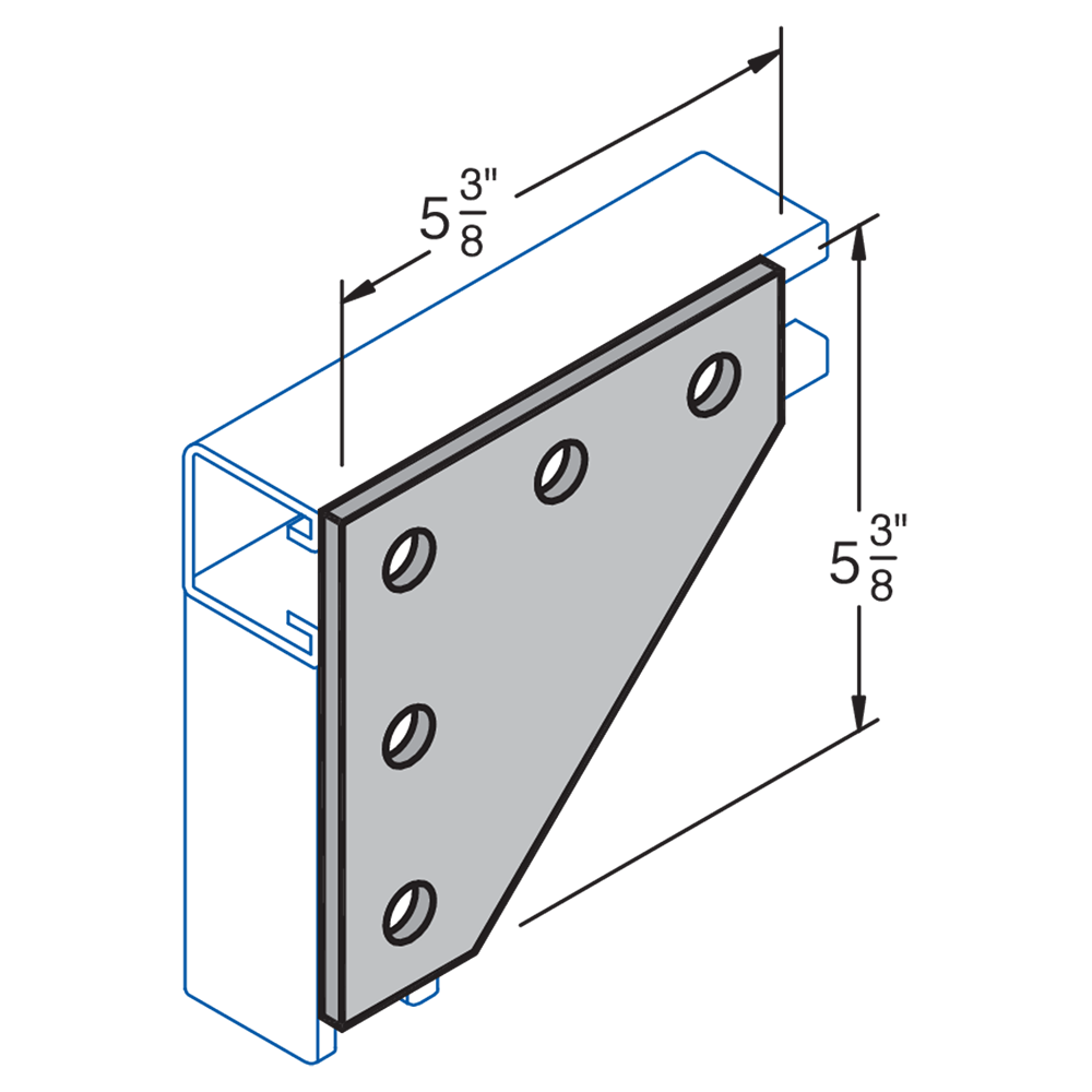 H-STRUT General Fittings are designed to fit with all H-STRUT 1-5/8" wide channels. All H-STRUT fittings are manufactured from 1/4" thick carbon steel, 1-5/8" wide, all holes are 9/16" diameter, spaced 1-7/8" on center and 13/16" from the end.