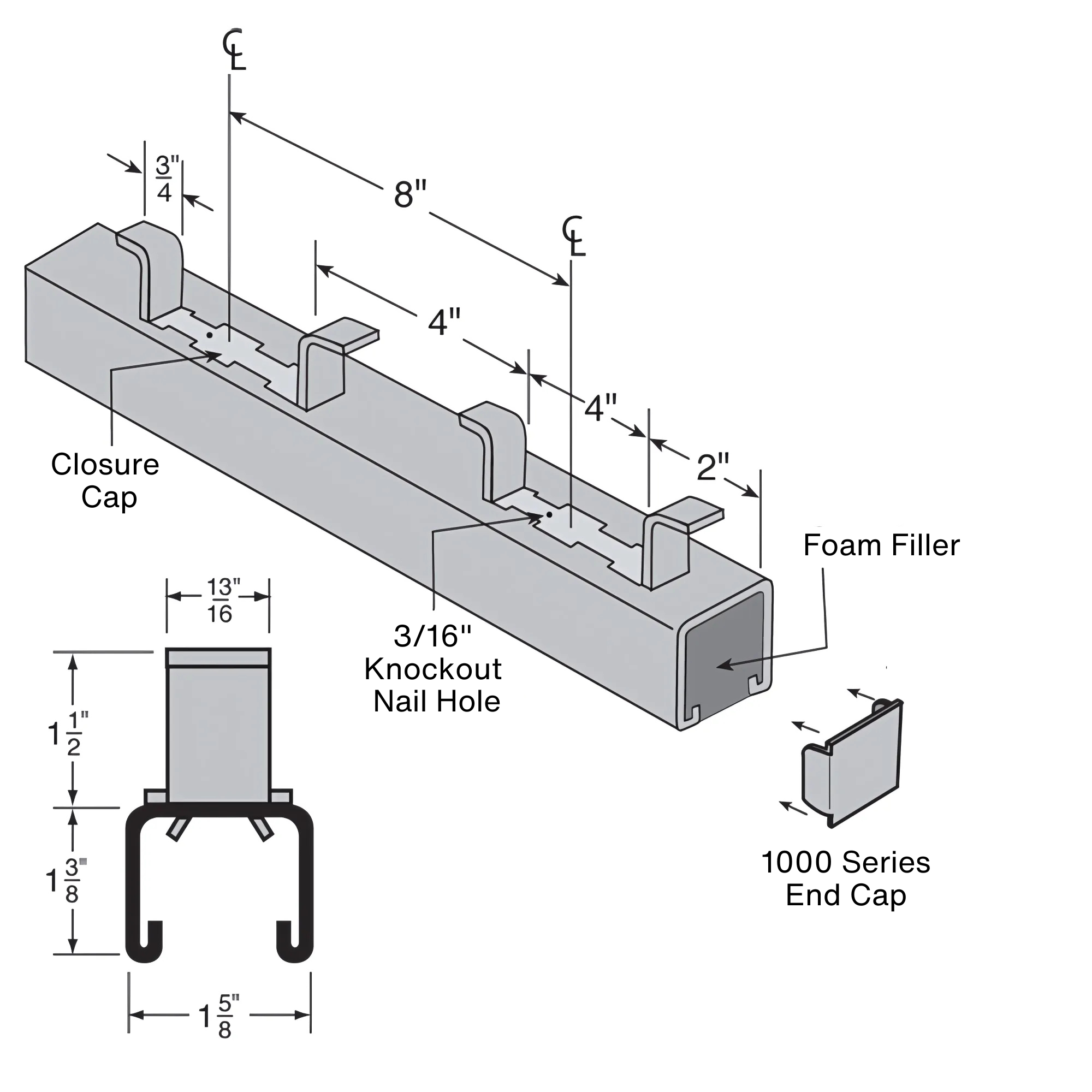 | Length(in) | Weight/100 pcs. | Max. Allowable Lbs. Load Per 12” Section |