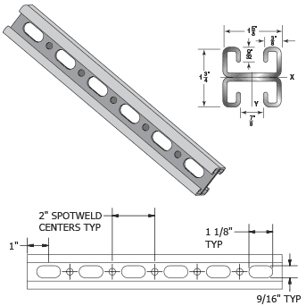 H-172-OSA strut channels are manufactured by a series of forming dies, or rolls, which progressively cold work the strip steel into the desired channel configuration. This method produces a cross-section of uniform dimensions within a tolerance of ±0.015" on outside dimensions.