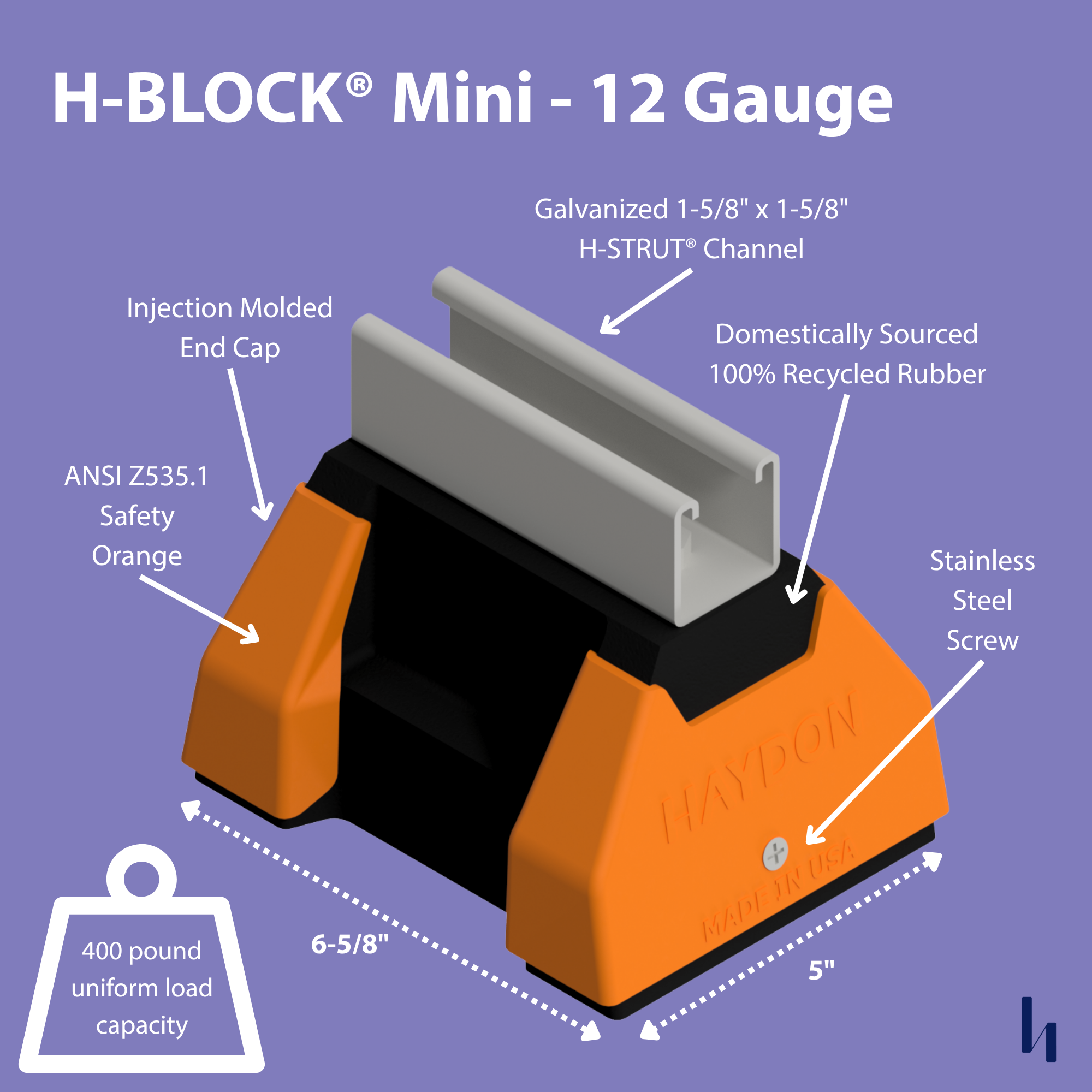 H-Block Mini Rooftop Support Series is designed specifically for single pipe supporting. The H-Block Mini Series with H-132 has 1⅝" pre-galvanized steel channel and is UV resistant and suitable for installation on most types of roofing material or other flat surfaces.