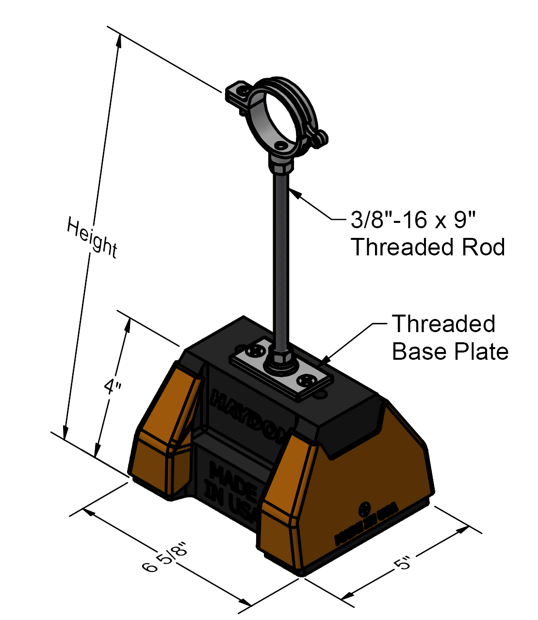 | HBM-HPC-¾ IN-EG | 80805 | 2.8 | 10" – 12" (254 - 305 mm) | 5" (127 mm) | 6-5/8" (168 mm) | 250 | 2 |