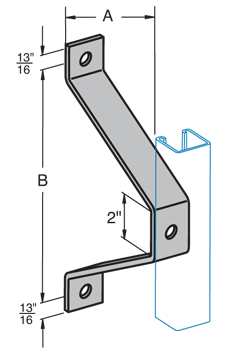 H-STRUT General Fittings are designed to fit with all H-STRUT 1-5/8 wide channels. All H-STRUT fittings are manufactured from 1/4 thick carbon steel, 1-5/8 wide, all holes are 9/16 diameter, spaced 1-7/8 on center and 13/16 from the end.